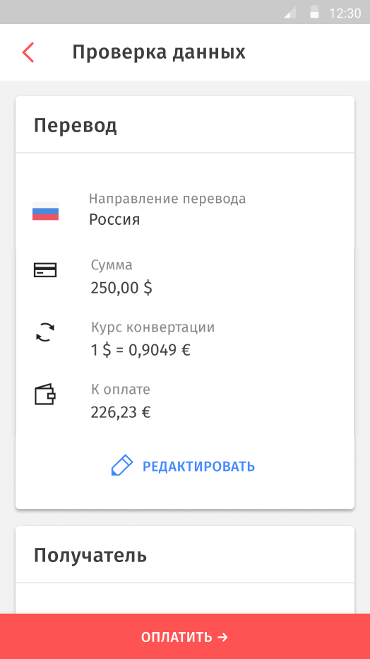 Оплатите перевод
