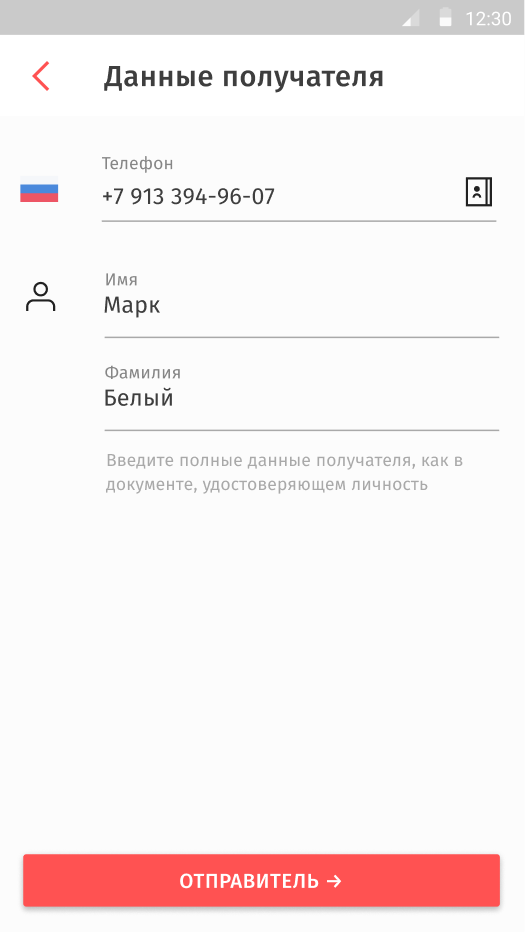 Введите имя и фамилию как в паспорте – это важно при получении перевода из-за рубежа*.